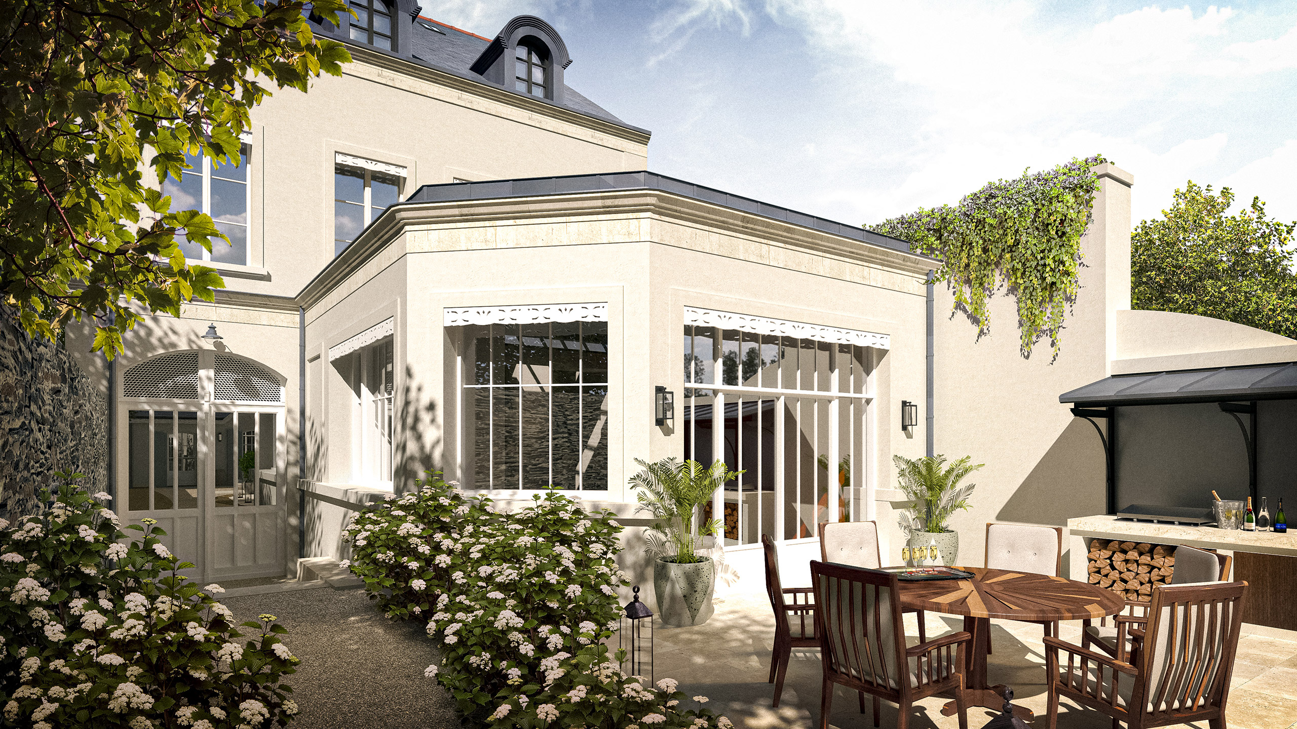 Les propriétaires de cet hôtel particulier du 18ème siècle souhaitent conserver l’authenticité et le charme de cette bâtisse tout en bénéficiant du confort et de la fonctionnalité d’une habitation contemporaine. Au-delà de la transformation et du réagencement des pièces existantes, une extension et une annexe sont créées au sein d’une cours arrière re-qualifiée.