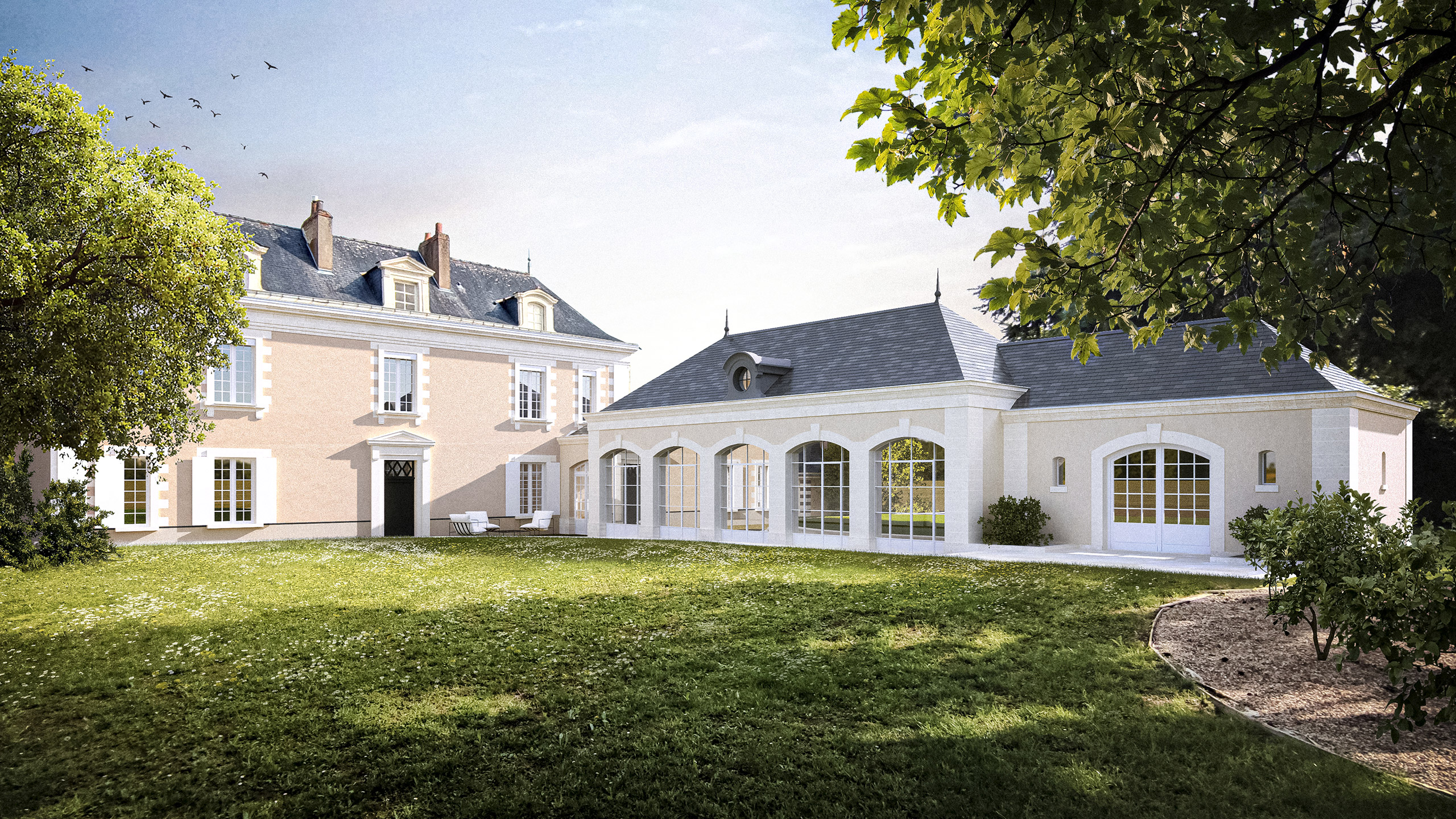 L’intention de recréer l’aile de cette maison de maitre du 17ème siècle est guidé par la recherche de l’harmonie des volumes et des écritures architecturales. Largement ouverte sur le jardin, cette extension inspirée des orangeries du 18ème siècle accueille des espaces domestiques et une piscine.